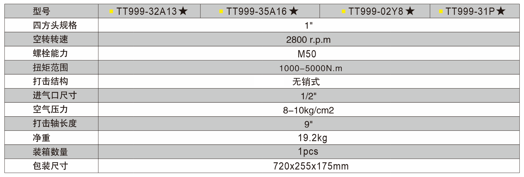 4、所有機型可更換3“打擊軸。